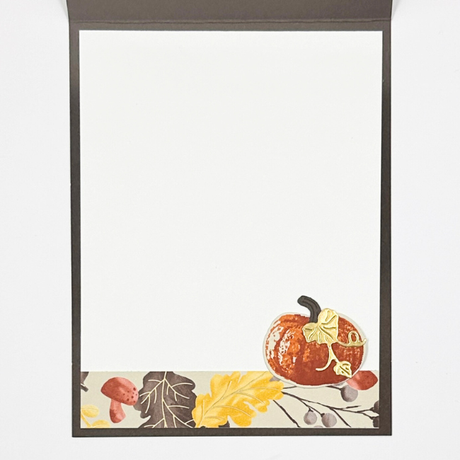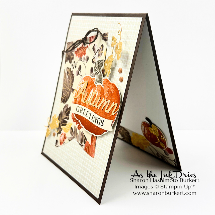 - Pumpkin leaves and vine in Gold Foil cut using the Beautiful Pumpkin dies.