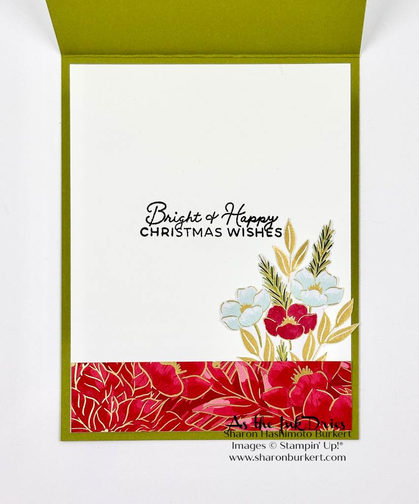 - Bouquet from the Traditions of Christmas Specialty DSP. Center flower colored using Cherry Cobbler Stampin’ Blends.