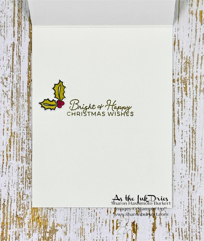 - Sentiment from the Jolly Holly stamp set inked in Tuxedo Black Memento ink.