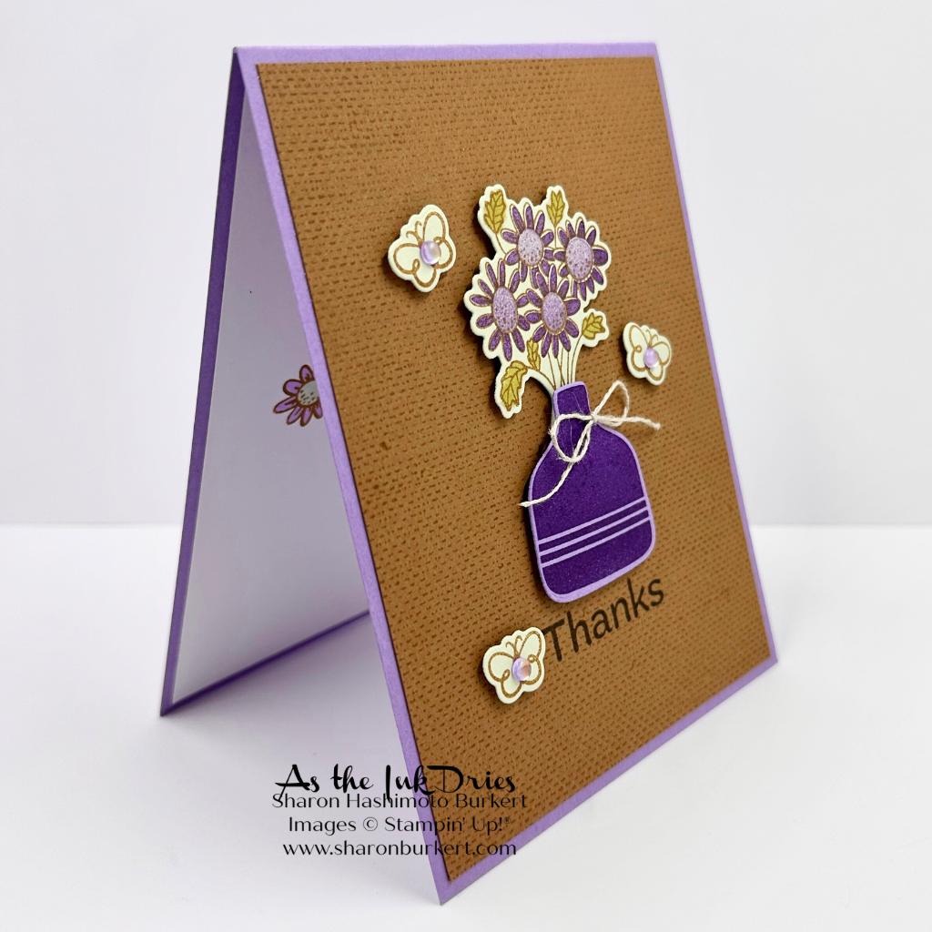 - The vase was inked in Gorgeous Grape and stamped on Highland Heather CS.