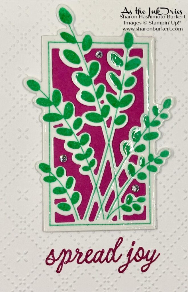 - Die cut a piece of Shy Shamrock CS with the smaller rectangle die and use the negative pieces to fill in around the stamped image.