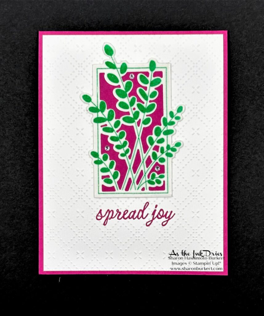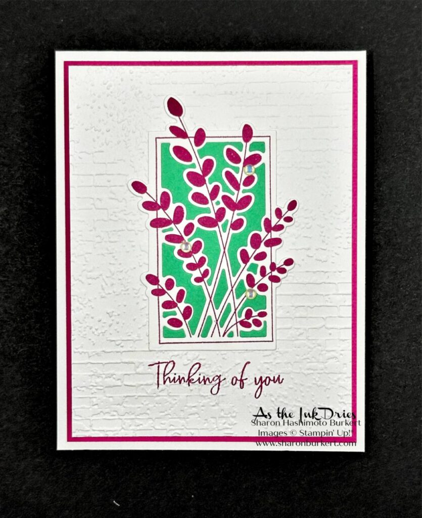 - Stamp the image in Berry Burst ink and cut out using the 2 rectangle dies.