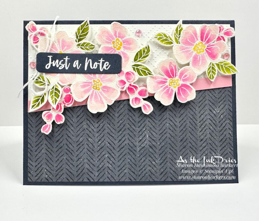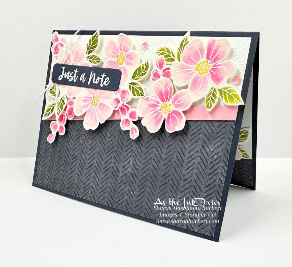 Once again I used the Fragrant Layer bundle (January Online Exclusive). One of the reasons I bought this set was to be able to do different coloring techniques. I love 2 Step Stamping and solid stamps but I also enjoy coloring., so I did a little watercoloring. It was so fun to do.