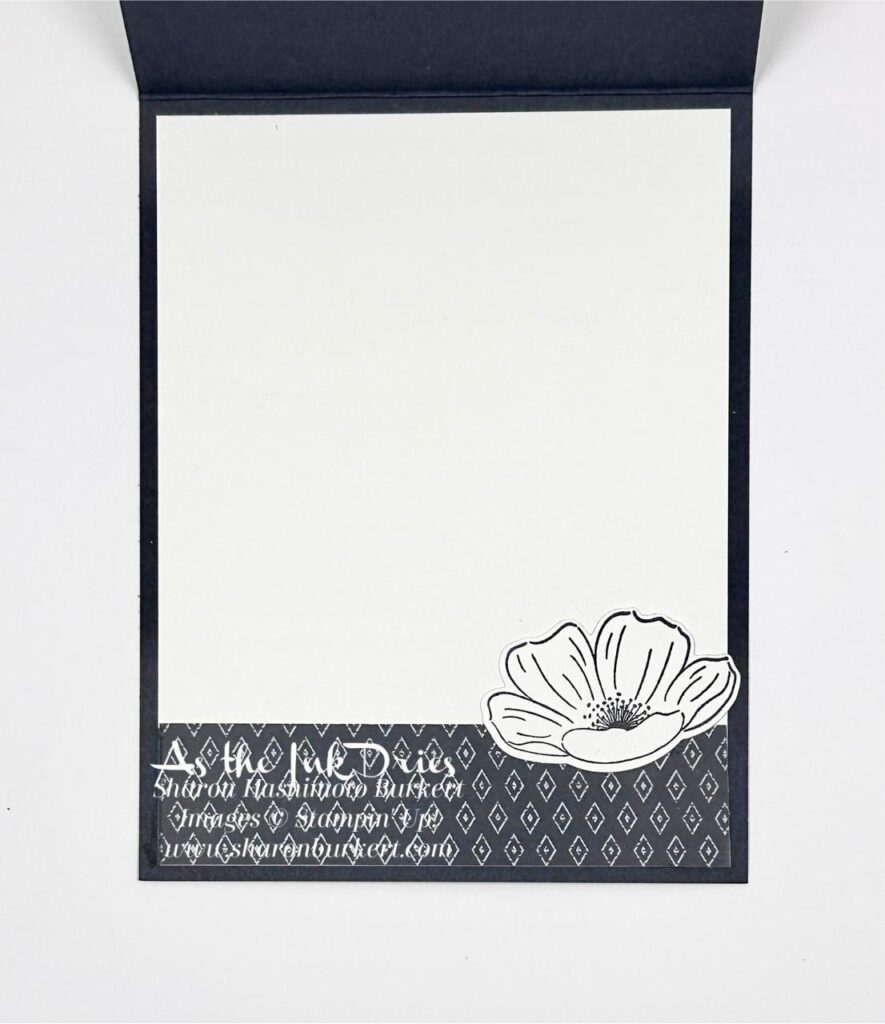 I always like to decorate the inside of my cards. Sometimes it is simply a strip of Designer Series Paper (DSP) and a stamped image. I do not have a specific plan for this card so I am not stamping a sentiment inside.